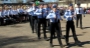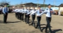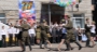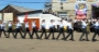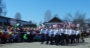 Начало шествия, впереди колонны знаменосец учащийся 11 класса Романьков Эдуард