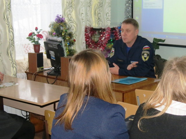 Начальник ПЧ-153 Снегирев В.В. на встрече с учащимися 9 – 11 классов