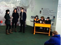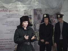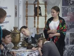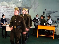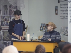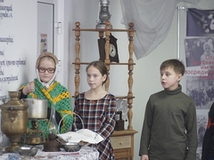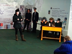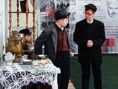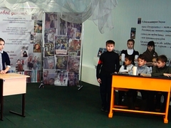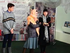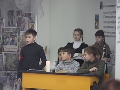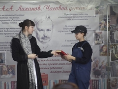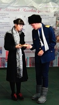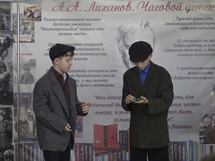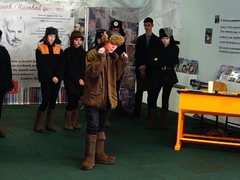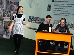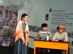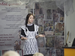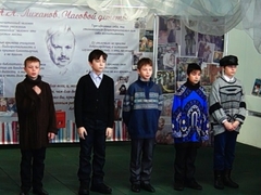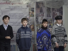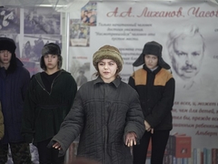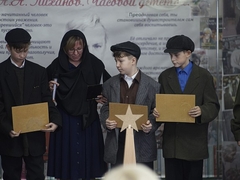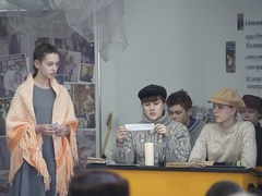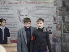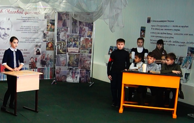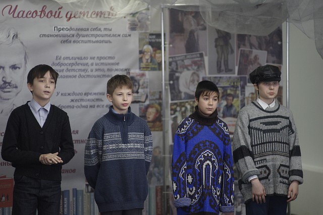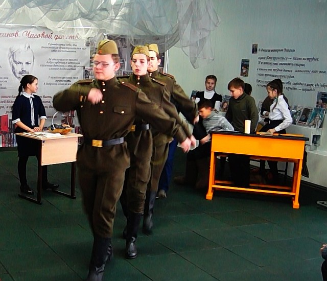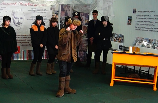 Отрывок из повести «Детская библиотека», представленный учениками 8-А класса Карнауховым Михаилом, Дубковой Елизаветой, Березовской Викторией, Тайшиной Алиной, Титовой Варварой, Марковой Александрой, Гомиловской Дарьей, Власовой Вероникой, Коноваловой Валентиной и классным руководителем Анной Николаевной Монаковой, вызвал не только грусть, но и улыбку, ведь два друга Колька и Вовка так увлеклись чтением Пушкина, что разговаривали меж собой цитатами из его произведений. Колька был счастлив, когда Вовка обратился к нему: «Мой первый друг, мой друг бесценный!...». Разве Вовка назвал бы его когда-нибудь так, если бы не Пушкин! Они играли не на показ. Лишь однажды Вовка «сорвался», «…но не сильно. Другие даже не поняли. Это было в начале последнего урока. Анна Николаевна рассказывала про последние известия с фронта, а Вовка, такая у него была почетная обязанность, передвигал флажки на карте под руководством учительницы.