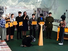 Заключительные сцены спектакля показали учащиеся 6 и 9 классов по повести «Последние холода». Это одно из наиболее драматических произведений о военном детстве.