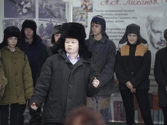 Они были разными, мальчишки военных лет. Колька в повести «Крутые горы» считал, что «раз Родина-мать зовет», то и он должен что-то делать для победы. И он решил шить кисеты, ну и что, что это девчачье дело. Ученики 5-Б класса Антипин Максим, Агафонов Денис, Кутимский Тимофей, Сноровихин Максим, Агеева Надя, Серкина Катя, Астафьева Софья, Молчанова Мария, Жучкова Марина, Антонь Алина, Льготина Ангелина, Дмитриева Оксана, Березовская Ксения со своим классным руководителем Марией Леонидовной Мязиной со всей серьезностью подошли к делу: и кисеты нашили, и большие тексты выучили, и чувства смогли выразить через слово.