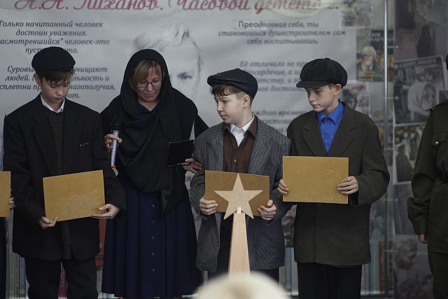 Эвакуированные дети остались без продуктовых карточек в чужом городе. Если бы не Колька с мамой и бабушкой, дети погибли бы. Сложные эпизоды ребятам удались. Под руководством Оксаны Ренатовны Хисматуллиной и Светланы Алексеевны Балмашевой отрывки подготовили Андреев Олег, Синьков Дмитрий, Фролов Тимофей, Хазеев Марат, Кудинов Григорий, Курилов Иван, Антипин Антон, Гранина Арина, Бобрякова Настя, Муромцев Влад, Потапова Карина, Черных Дарья, Серкина Карина.