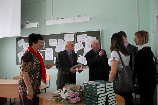 Геннадий Павлович Корзенников, председатель общественной организации «Дети войны, чьи отцы погибли в годы Великой Отечественной войны 1941 – 1945 г.г.», рассказал о том, что есть у автора стихи, которые он переложил на музыку, о том, что Станислав Васильевич не забывает своих друзей и посвятил им стихи - хорошая черта человека. Затем слово взяла школа: Светлана Алексеевна Балмашева, учитель русского языка и литературы, сказала о том, что дети войны – это люди трудной судьбы, это мудрое поколение, которое умеет находить радость в, казалось бы, незначительных мелочах. Отметила разноплановость стихов С.В.Малых. Учащиеся прочитали стихи из презентуемого сборника: Даша Азаренко наизусть выучила стихотворение «Слово о чести», Роман Ильин прочел «Верной подруге», кто-то - басню «Осел и власть», стихотворение «Живем бестолково», «Киренск», «Отцам, погибшим на войне», Раньше старость уважали», «Всеобщая вина», «Страна родная», «Равнодушие». В ответ на это Станислав Васильевич подарил школе свой сборник стихотворений, а Чигряй Александр Дмитриевич, депутат районной Думы передал от районных органов самоуправления в дар школьной библиотеке книгу Анатолия Горбунова «Любовь земная» с напутствием любить и хранить свою природу и родину, помнить и знать свои корни. Встреча не прошла бесследно, старшеклассники не торопились уходить: между старшим и молодым поколениями завязался разговор. Президент школьного объединения классных компаний Корольков Валерий изъявил желание приобрести сборник с автографом автора и предложил гостям экскурсию по школе и рассказ о «ШОКК»- школьном объединении классных компаний, чем, в свою очередь, вызвал интерес у старшего поколения. Инициатива перешла к молодежи, и это радует.